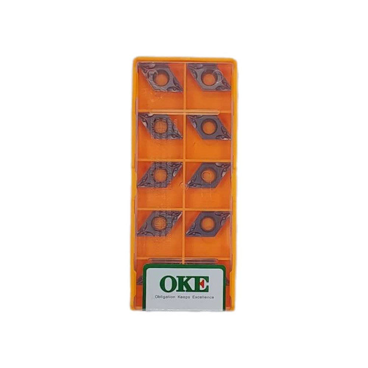 اینسرت موجود در تصویر از برند OKE و با مشخصات DCMT11T308_OTM با گرید OP1215 برای تراشکاری استیل و فولاد است.